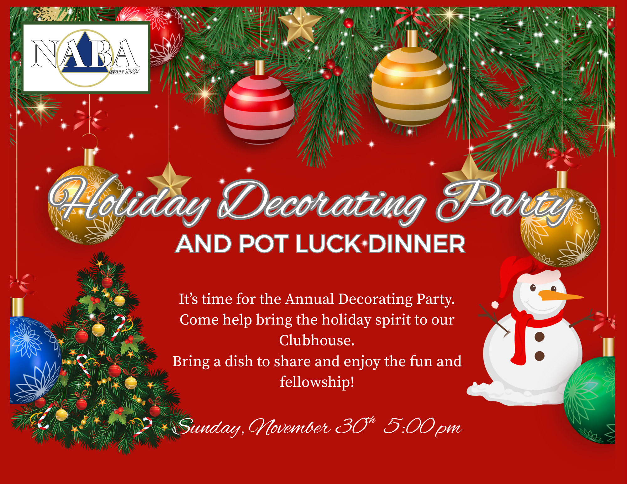 An evening of sharing food and bringing the Season's beauty to our Club House. |